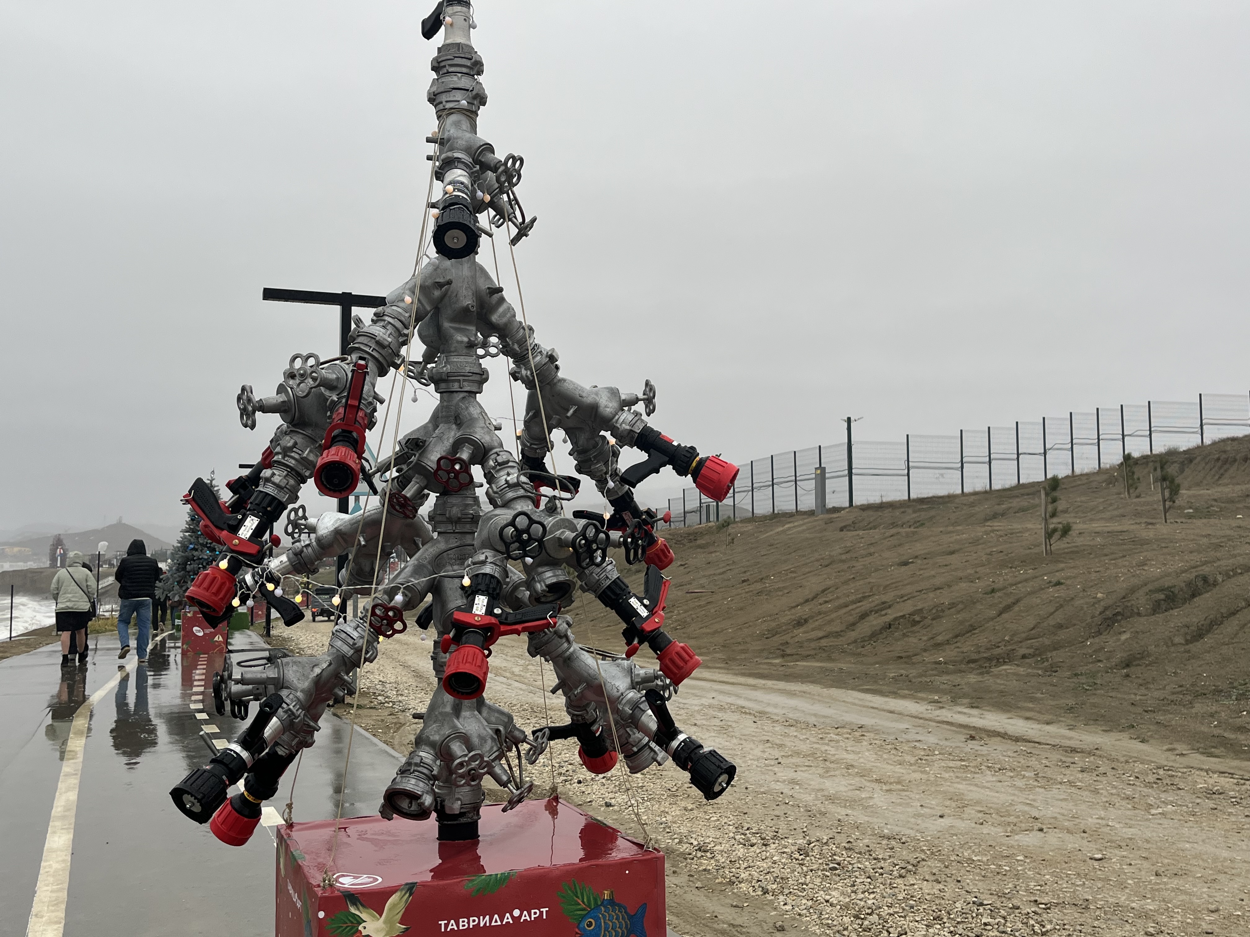 Помимо встречи с главным новогодним волшебником, гостей ждала и аллея ёлок, представленных от крымских компаний и даже от тех, кто спасает жизни многих людей – ГУ МЧС России по Республике Крым. Эта невероятная инсталляция, собранная из труб и кранов, напоминает нам о сложной, но очень важной работе главных спасателей.