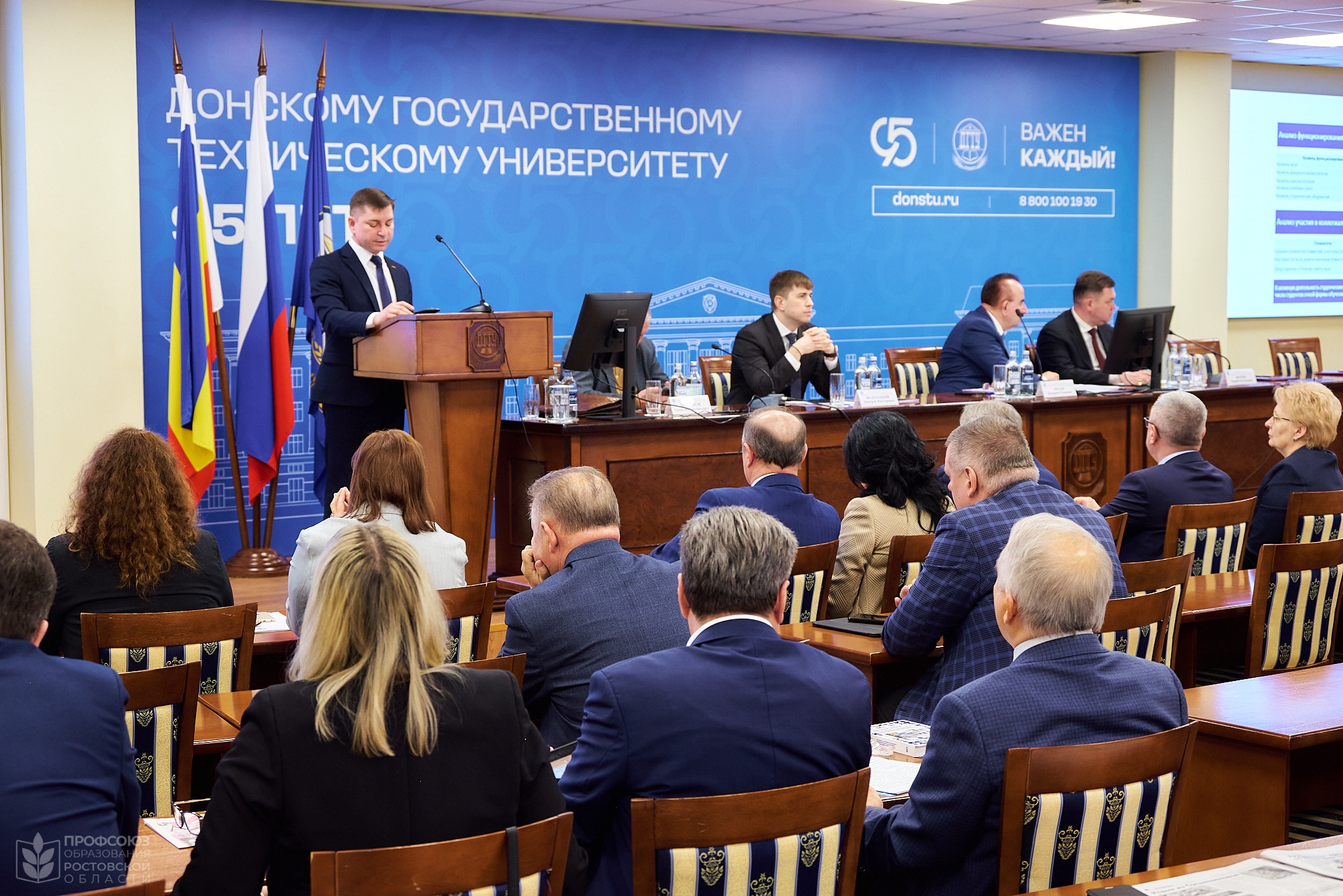 По одному из ключевых вопросов заседания, которое было посвящено деятельности представительных органов обучающихся в вузах Ростовской области, выступил Владимир Гайворонский, председатель Ростовской областной организации Общероссийского Профсоюза образования.