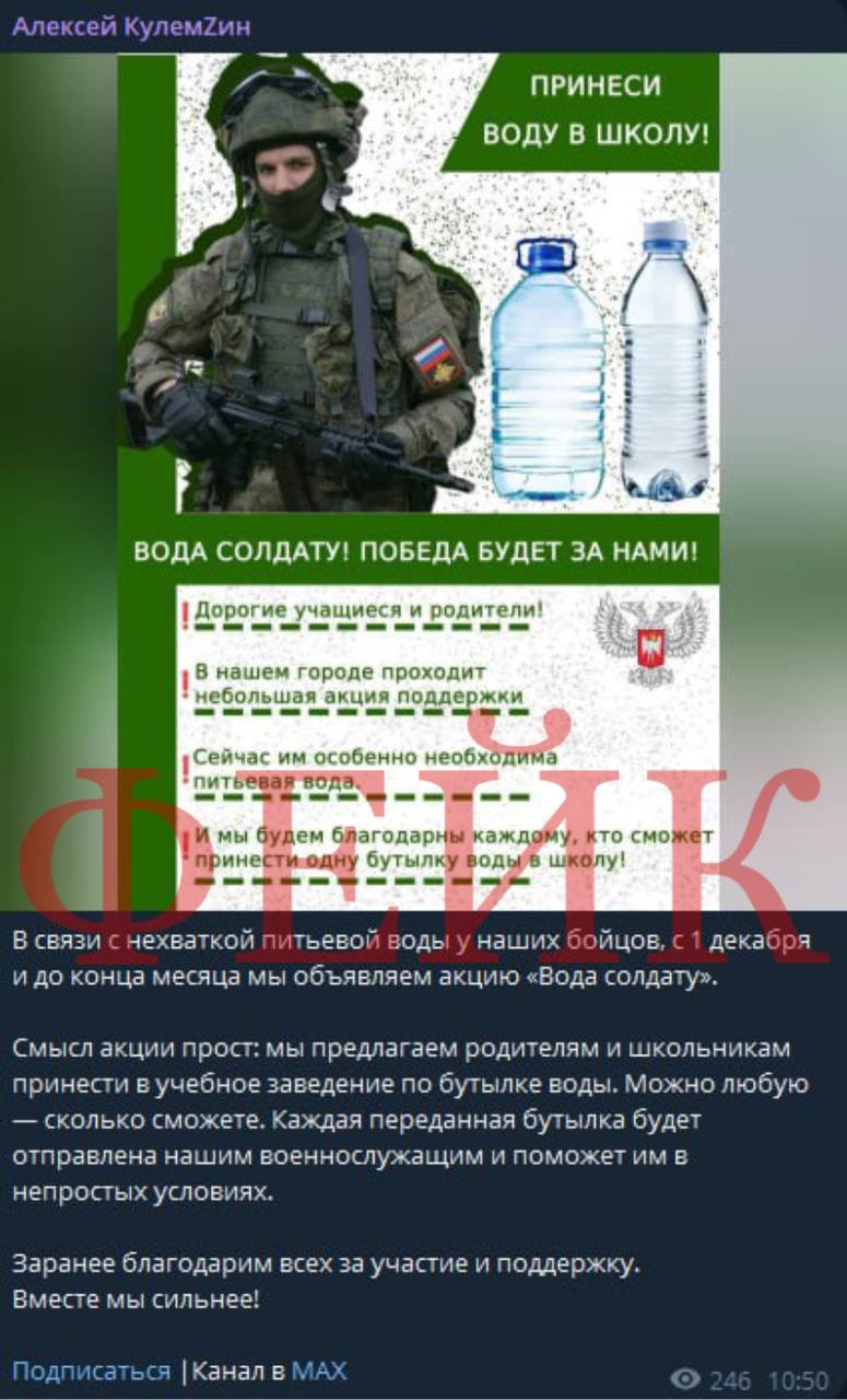 А на просторах интернета гуляют уже несколько новых «уток». Украинские пропагандисты создали фейковые страницы руководства ДНР, где публикуют недостоверную информацию о распоряжении главы ДНР Дениса Пушилина по сбору воды для солдат.