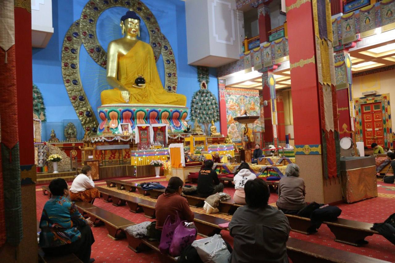 Национальный праздник Цаган Сар верующие Калмыкии встретили ранним утром в «Золотой обители Будды Шакьямуни». Каждый из присутствующих принял на ближайшие 24 часа однодневные обеты Махаяны. Их даровал досточтимый геше‑лхарамба Джагба Гьяцо.
